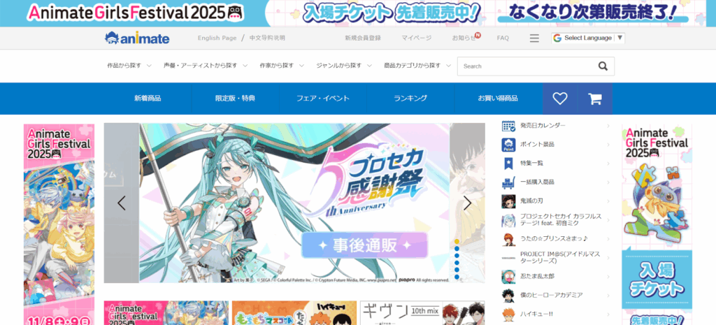 また、アニメイトポイントや店舗受取サービスもあり、リアル店舗との連携もスムーズ。公式グッズを安心して手に入れたい方、コレクション目的で買い逃したくない方に最適のECサイトです。
