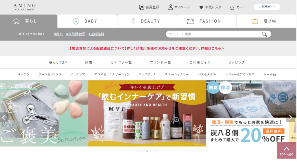 「手に届く暮らしの幸せ」をコンセプトに、全国30店舗以上で展開する「雑貨と贈り物の店Aming(アミング)」の公式オンラインショップです。
