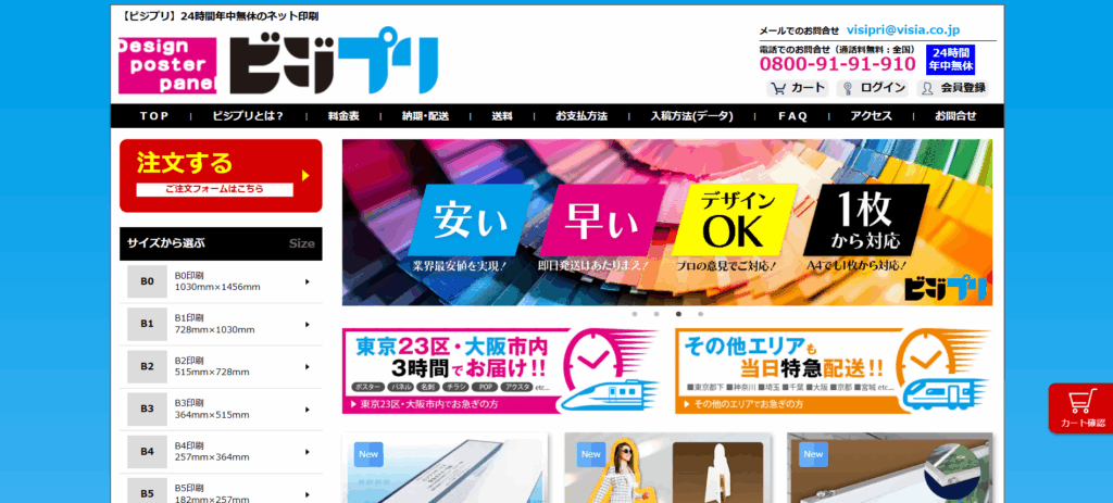 さらに、急なイベント準備や追加発注にうれしい特急便プランを用意。入稿から最短3時間で出荷でき、タイトなスケジュールでも間に合わせやすい体制です。反対に、納期に余裕がある場合は激安便プランでコストを抑えた制作も可能。用途や予算、スケジュールに合わせて選べる柔軟さが、ビジプリの強みです。