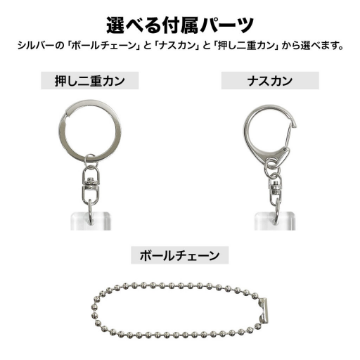 「ボールチェーン(シルバー)」「ナスカン」「押二重カン」の3種類をご用意しておりますので、