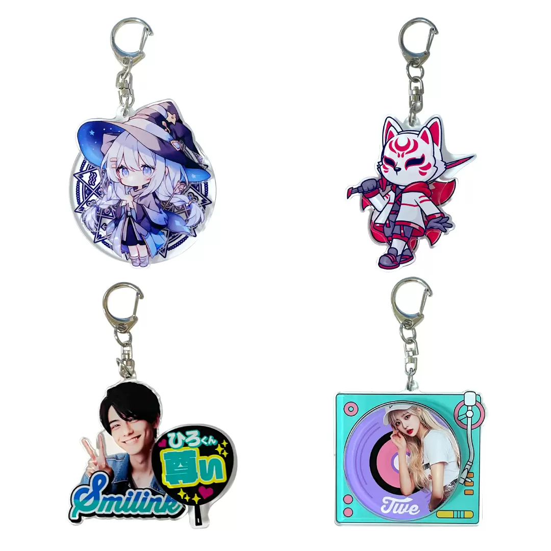 オリジナルくるくるアクリルキーホルダーは、くるくると回転する動きのある構造が最大の特長で、“初見でのインパクト”が非常に高いアイテムですので、競合との差別化にもつながります。話題性・拡散性の高い商品として、販売促進やファンの注目獲得に非常に効果的です。
