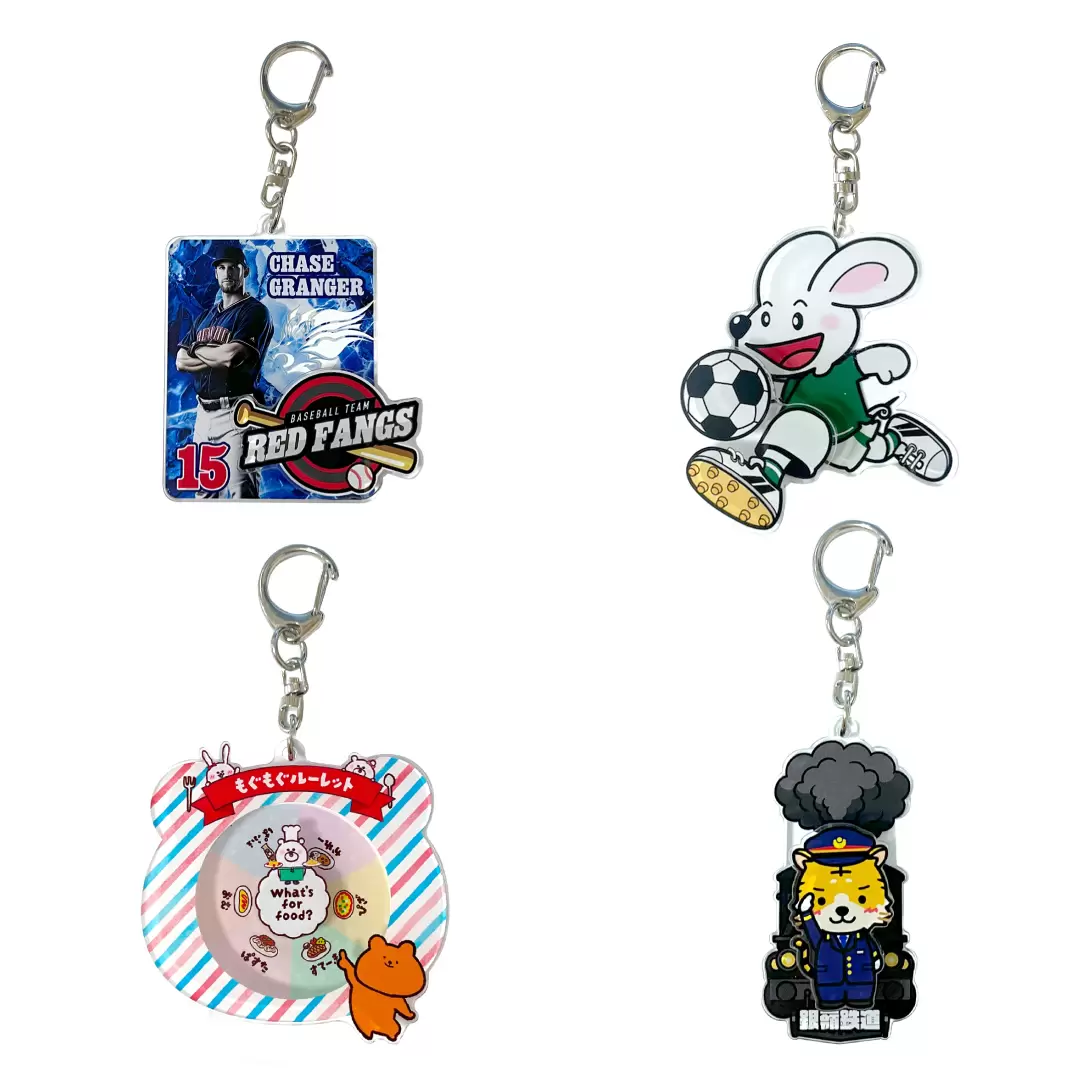 オリジナル くるくる回転アクリルキーホルダーは、自由な形状のダイカット加工に対応可能!