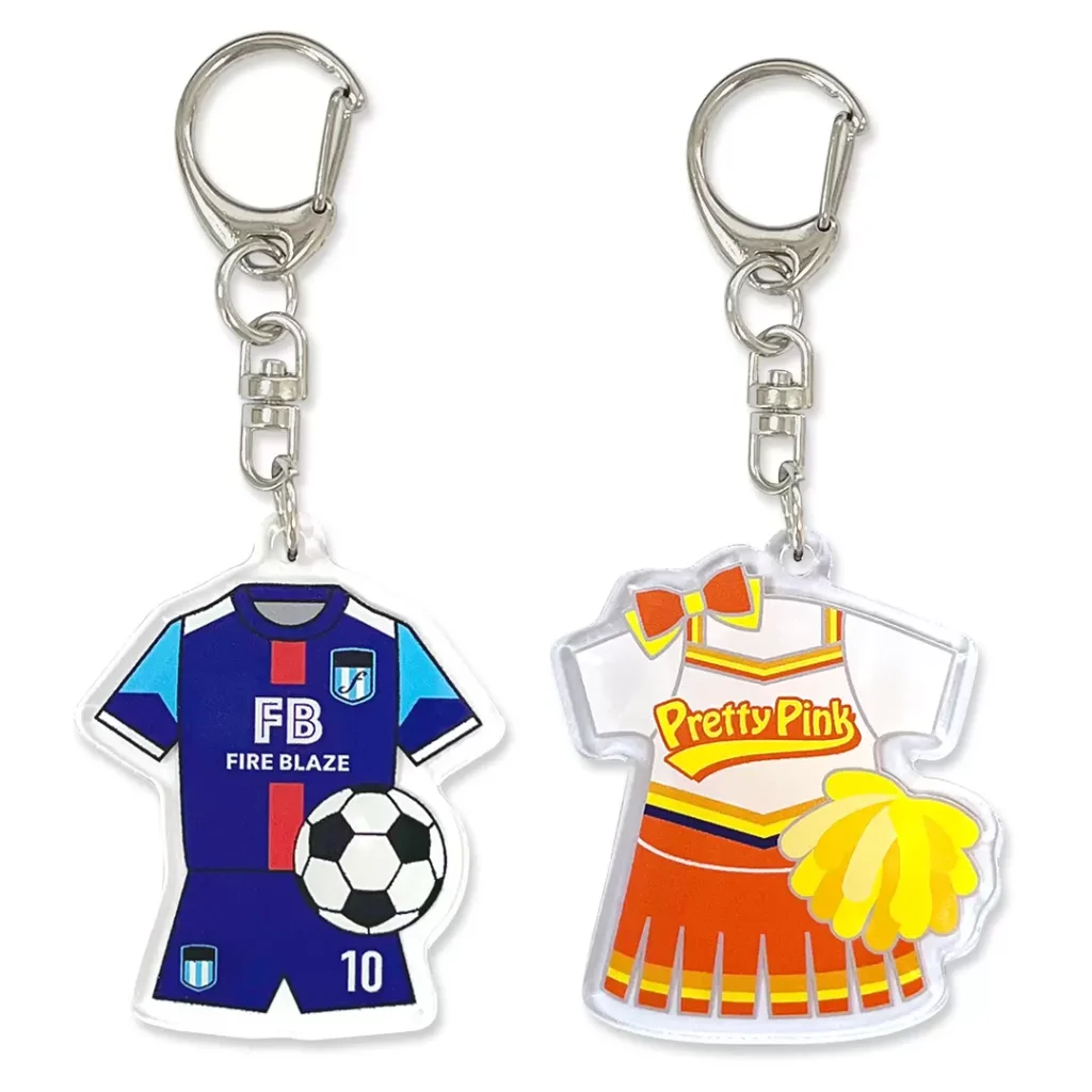オリジナルグッズの定番アイテムである「アクリルキーホルダー(アクキー)」を、お客様のオリジナルデザインで制作いたします。透明度が高く、美しい発色を実現する高品質なアクリル素材を使用し、国内生産ならではの丁寧な仕上がりでお届けします。