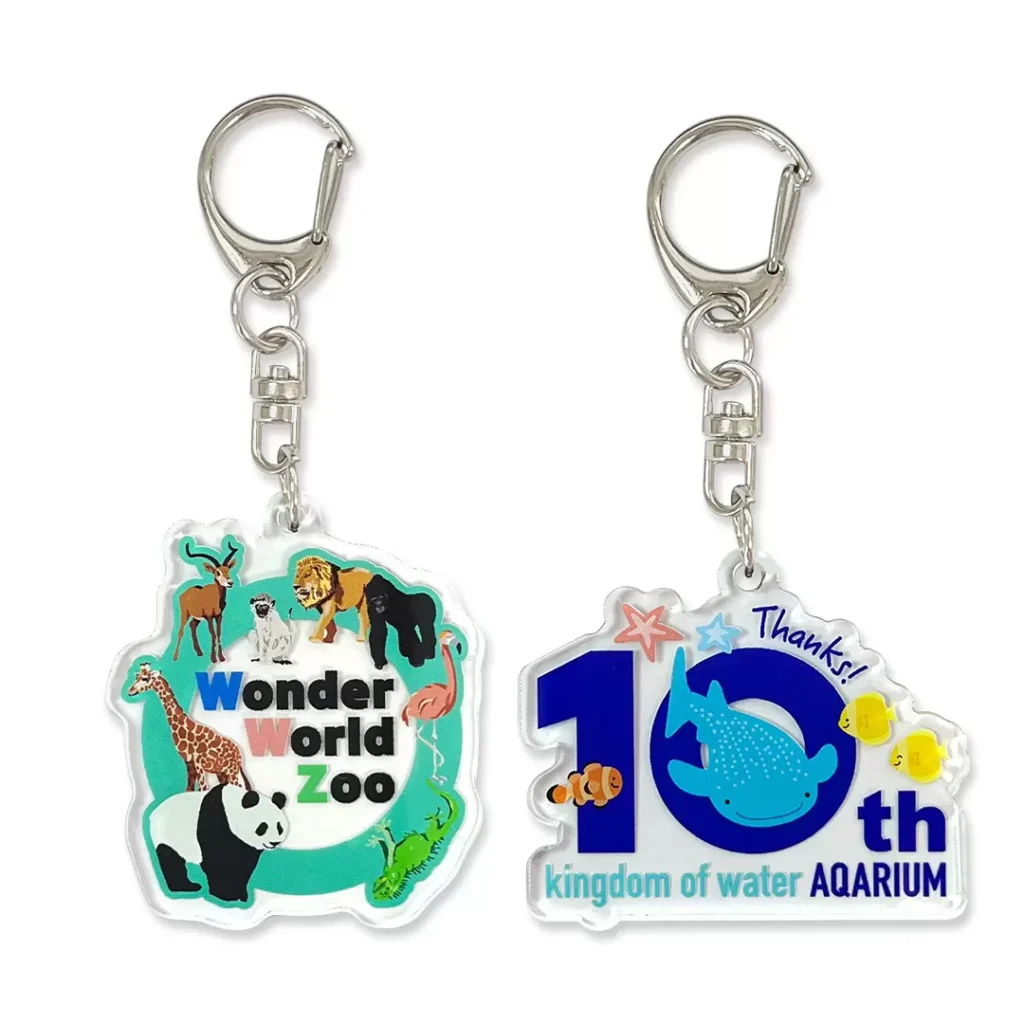 デザインは美麗なフルカラー印刷で鮮やかに再現し、ダイカット加工により自由な形に切り出すことが可能です。キャラクターやロゴ、イラストをそのままの形で表現できるため、オリジナリティあふれるキーホルダーが作れます。