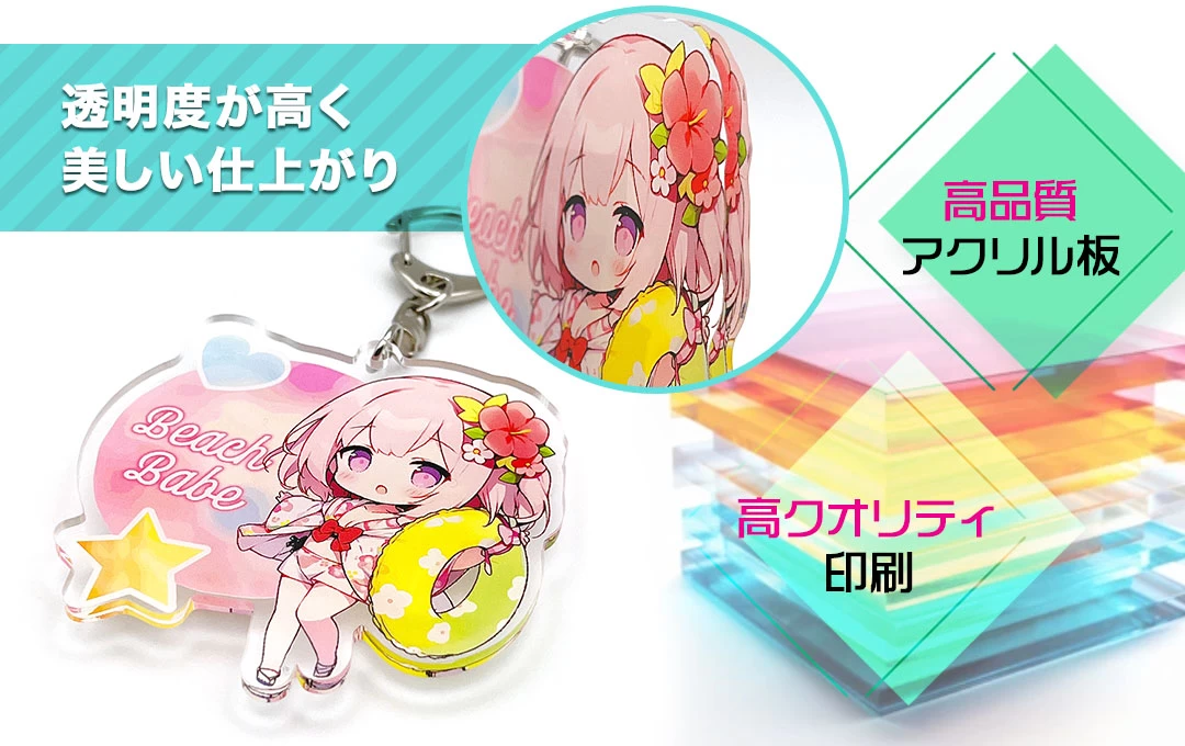 アクリルキーホルダー・アクキー、アクスタなどオリジナルグッズ製作の専門店です。最短3営業日発送してもらえるので、急ぎの発注にもおすすめです。
