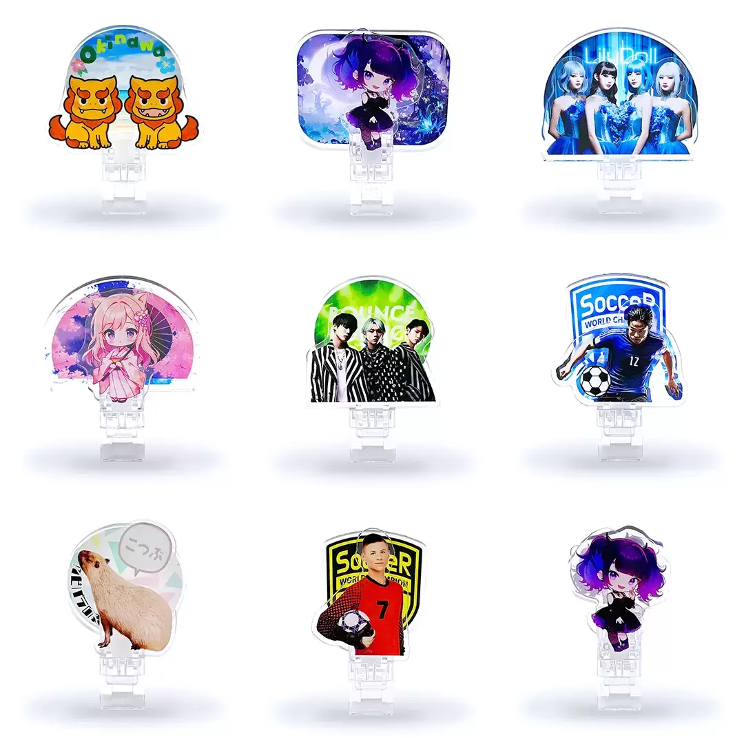 オリジナル アクリルスタンドクリップは、自由なデザイン展開と多様な用途により、アニメ・同人・アーティストグッズとしてはもちろん、ノベルティやイベント用ディスプレイアイテムとしてもおすすめの製品です。