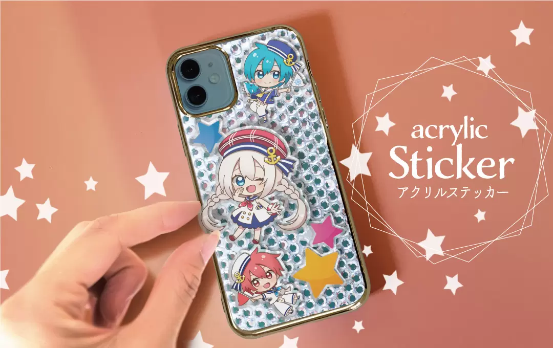 オリジナルイラストを使ったアクリルステッカーを制作しました。透明感があって高級感もあり、スマホケースに貼ると一気に華やかになりました。フルカラー印刷がとても鮮やかで、キャラクターの魅力がそのまま引き立ちます。