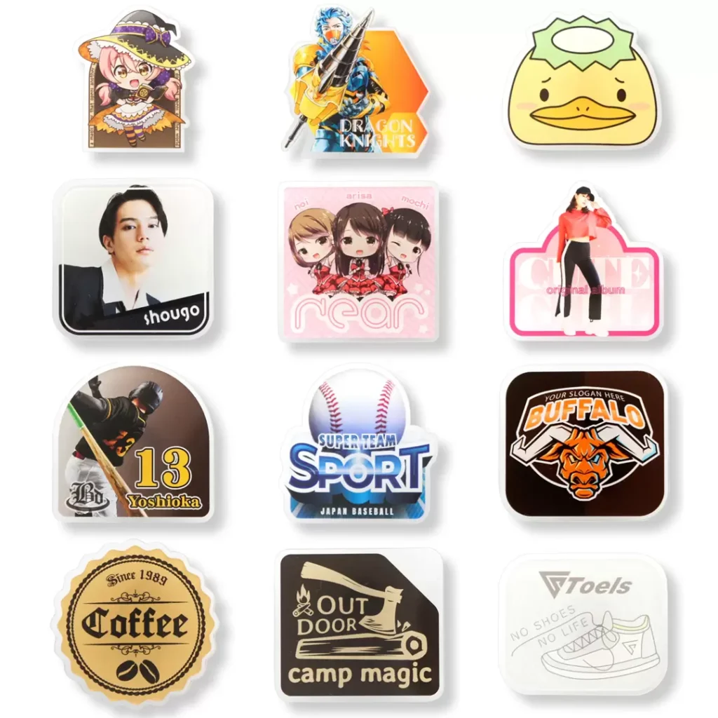 大きな魅力は、フックに取り付けるアクリルプレート部分を自由な形やデザインで制作できる点です。アクリルダイカット加工により、キャラクターやロゴをそのまま形にしたり、ブランドやアーティストのオリジナルモチーフを表現したりと、アイデア次第で個性的な仕上がりになります。透明度の高いアクリル素材とフルカラー印刷により、イラストや写真も美しく鮮明に再現でき、インテリア雑貨としても高いデザイン性を発揮します。