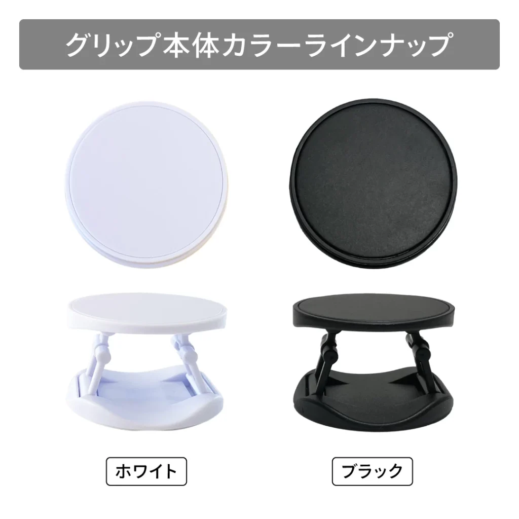 オリジナルアクリルスマホグリップのグリップ本体には「ブラック」「ホワイト」の2種類をご用意しております。