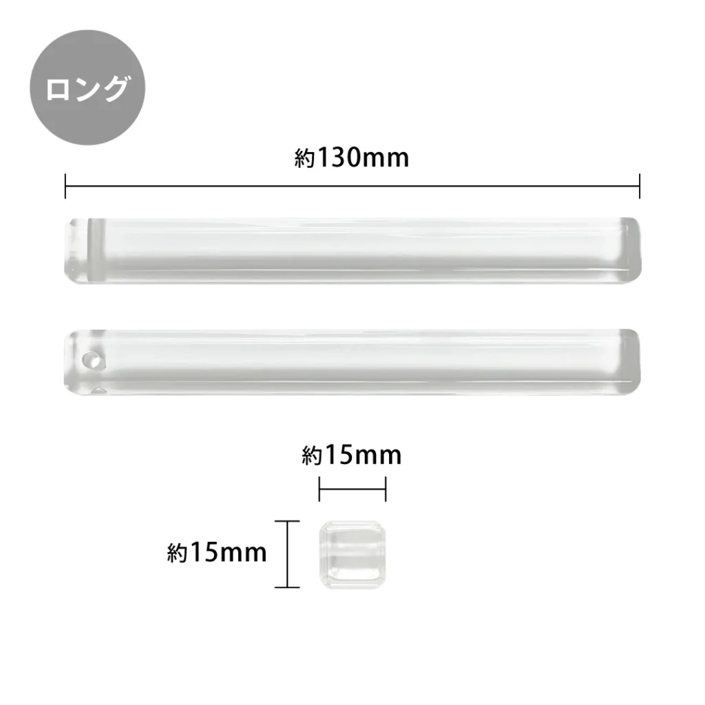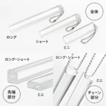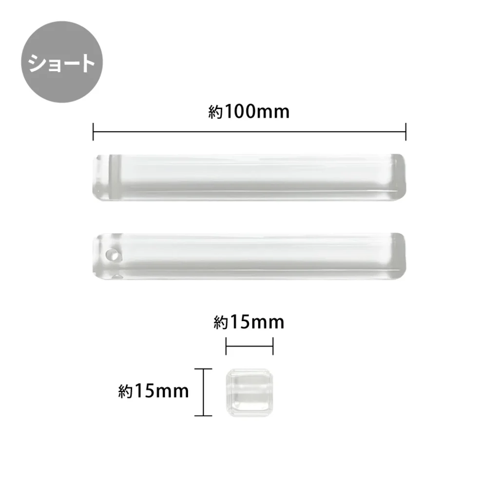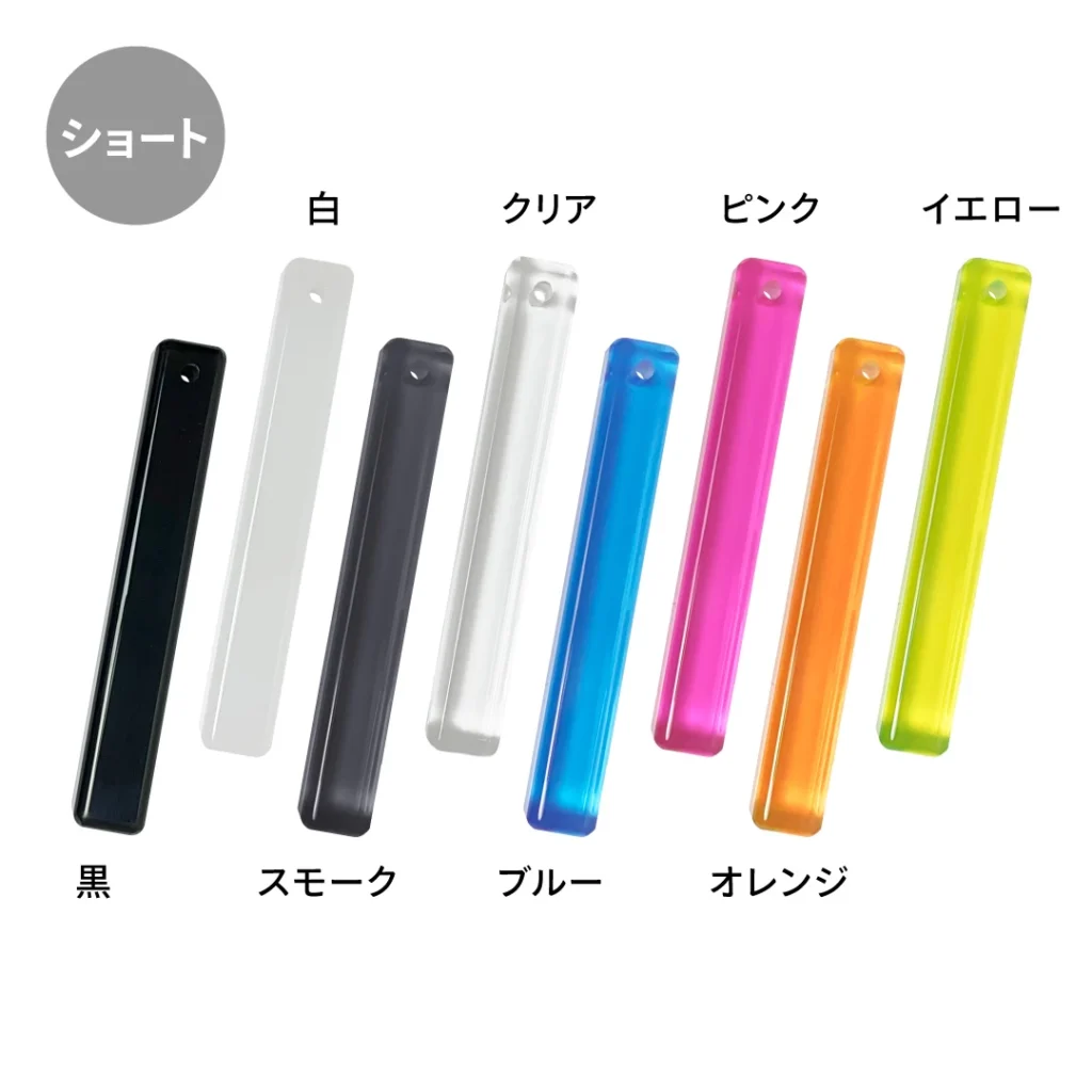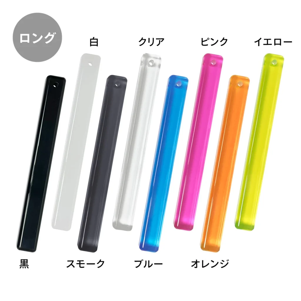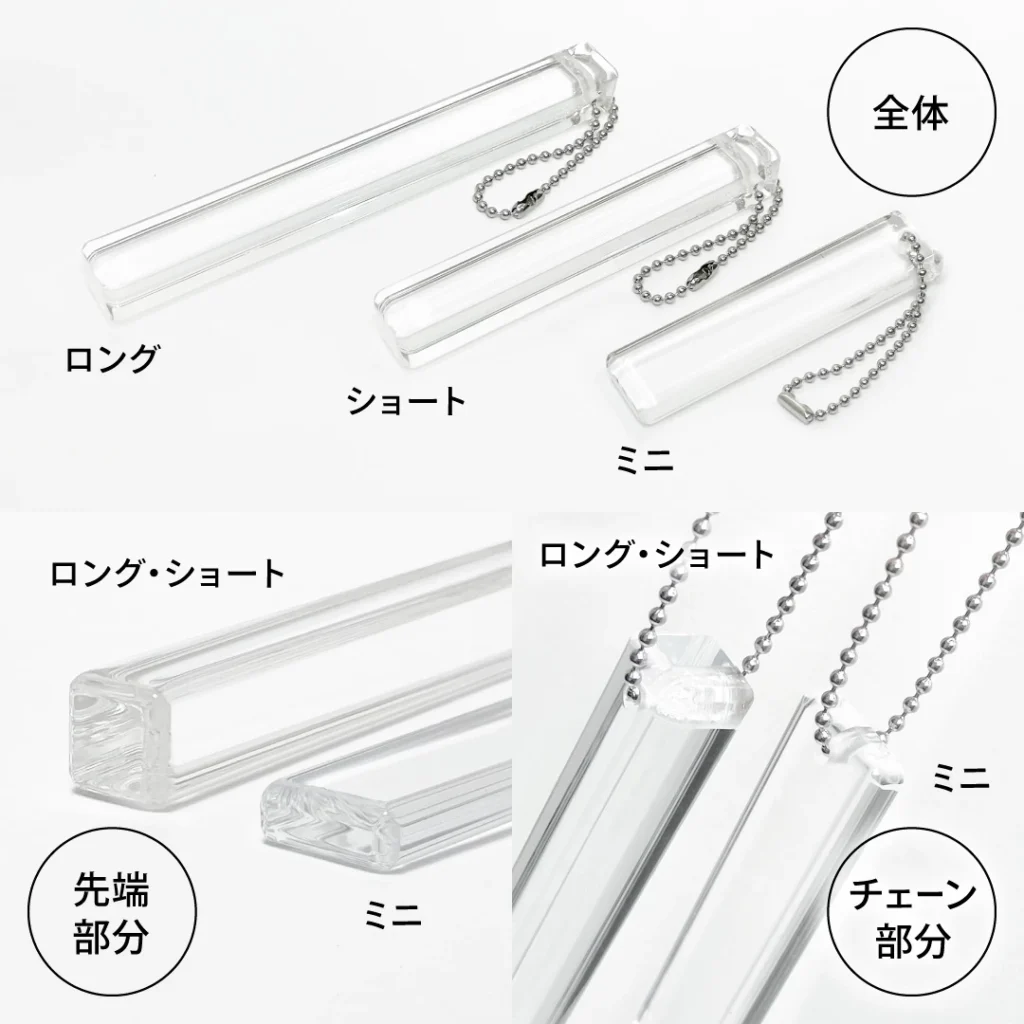 サイズはロング・ショート・ミニの3種類、カラーは8色の豊富なバリエーションをご用意。用途やテーマに合わせて自由に組み合わせることができ、カラーボールチェーンやワイヤーリングなどへのパーツ変更も可能です。名入れやフルカラー印刷にも対応しているため、推しキャラクターやアーティストのデザインを施した“推し活グッズ”や、サークル限定の同人グッズ、ライブ会場やイベントでの販売商品としても大変人気があります。