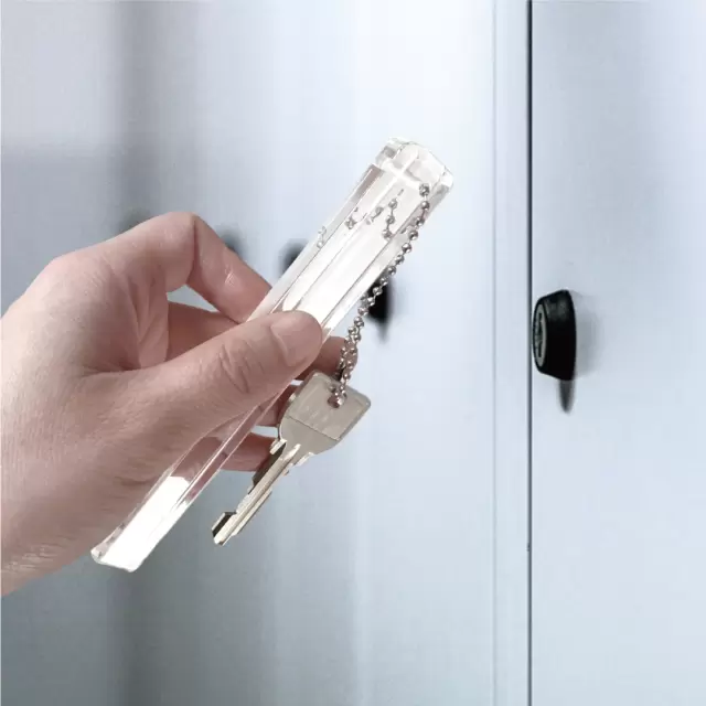 不特定多数が触れるエレベーターや自販機のボタン、ATMのタッチパネルといった感染リスクがある場所に直接触れずに操作ができる、新型ウィルスの感染リスクが常につきまとう新しい生活スタイルの各場面で助けとなる便利な感染対策グッズが「オリジナル タッチレス アクリルキーホルダー」です。 オリジナルの形状での制作も可能ですので、幅広いデザインに対応することができます。販売に必要な資材も取り揃えておりますので、お客様にはデザインをご入稿いただくだけでオリジナル商品として販売していただくことができます。国内生産で小ロットからの製作も承っておりますので、お気軽にご相談ください。 高品質な日本製のアクリル板をひとつひとつ丁寧に切り出した、様々な用途に利用できるコンパクトなキーホルダーです。 感染リスクがゼロにはならない新しい生活スタイルでは、日常的なウイルス対策が必要となります。 このオリジナルタッチレス アクリルキーホルダーをひとつ携帯するだけで、エレベーターのボタンやATMの感圧式タッチパネルなどに直接触れることなく操作することが可能です。