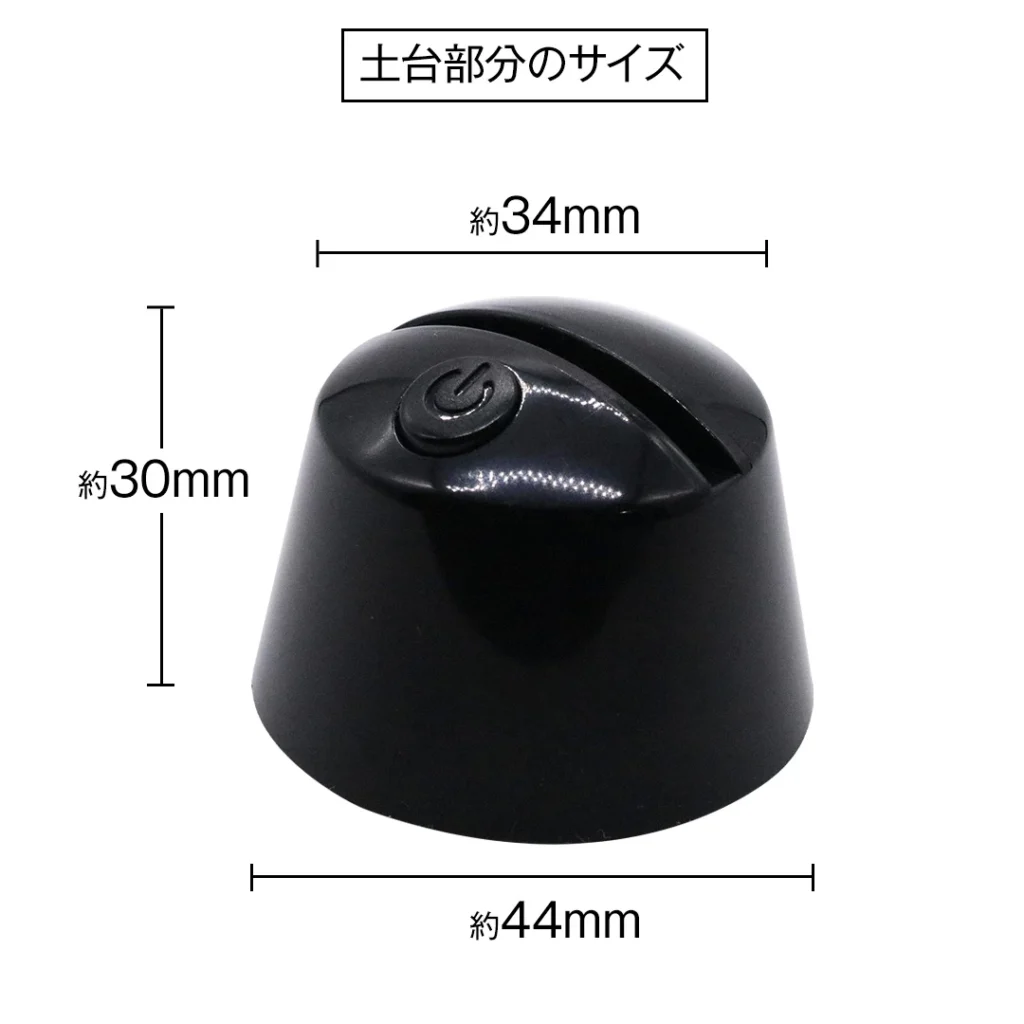はい。こちらの電源は、ボタン電池式を採用しています。コードが不要ですので、どんな場所にも設置していただくことが可能です。使用電池は「LR44×3個」です。LR44は、コンビニや百円ショップなどでも売っている一般的なボタン電池ですので、外出先などで電池切れがあっても安心です。
