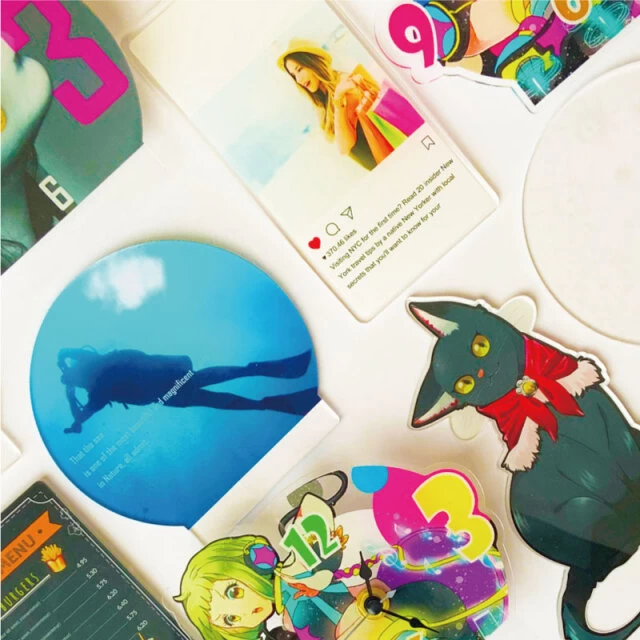 さらに、アクリル部分はダイカット加工に対応しており、デザインに合わせた自由な形で制作が可能です。キャラクターやアーティスト、スポーツ選手などのポーズやシーンに合わせてカットすることで、躍動感あふれるオリジナルアイテムを作り出せます。