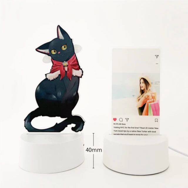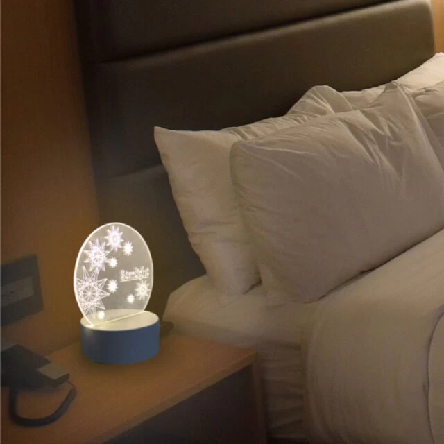ライトアップ効果により、印刷されたデザインが光に照らされて浮かび上がり、暗い場所でも存在感を放ちます。アニメやゲームのキャラクターグッズ、アーティストやアイドルのライブグッズ、イベント記念品としてはもちろん、飲食店や雑貨店のディスプレイ、企業のノベルティなどにも幅広くご活用いただけます。