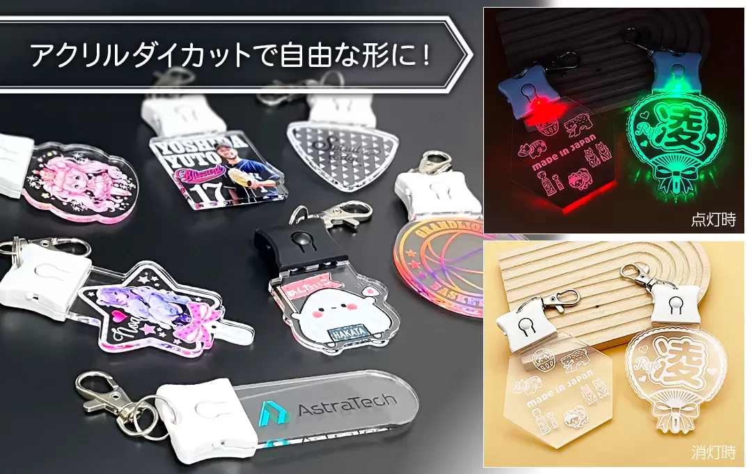 光るアクリルキーホルダーのほかにも、オリジナルで制作できる光るグッズはありますか?