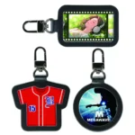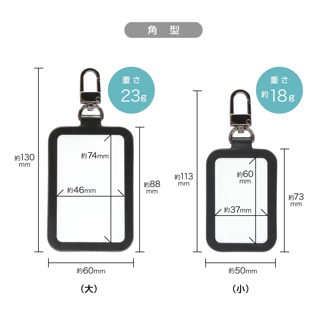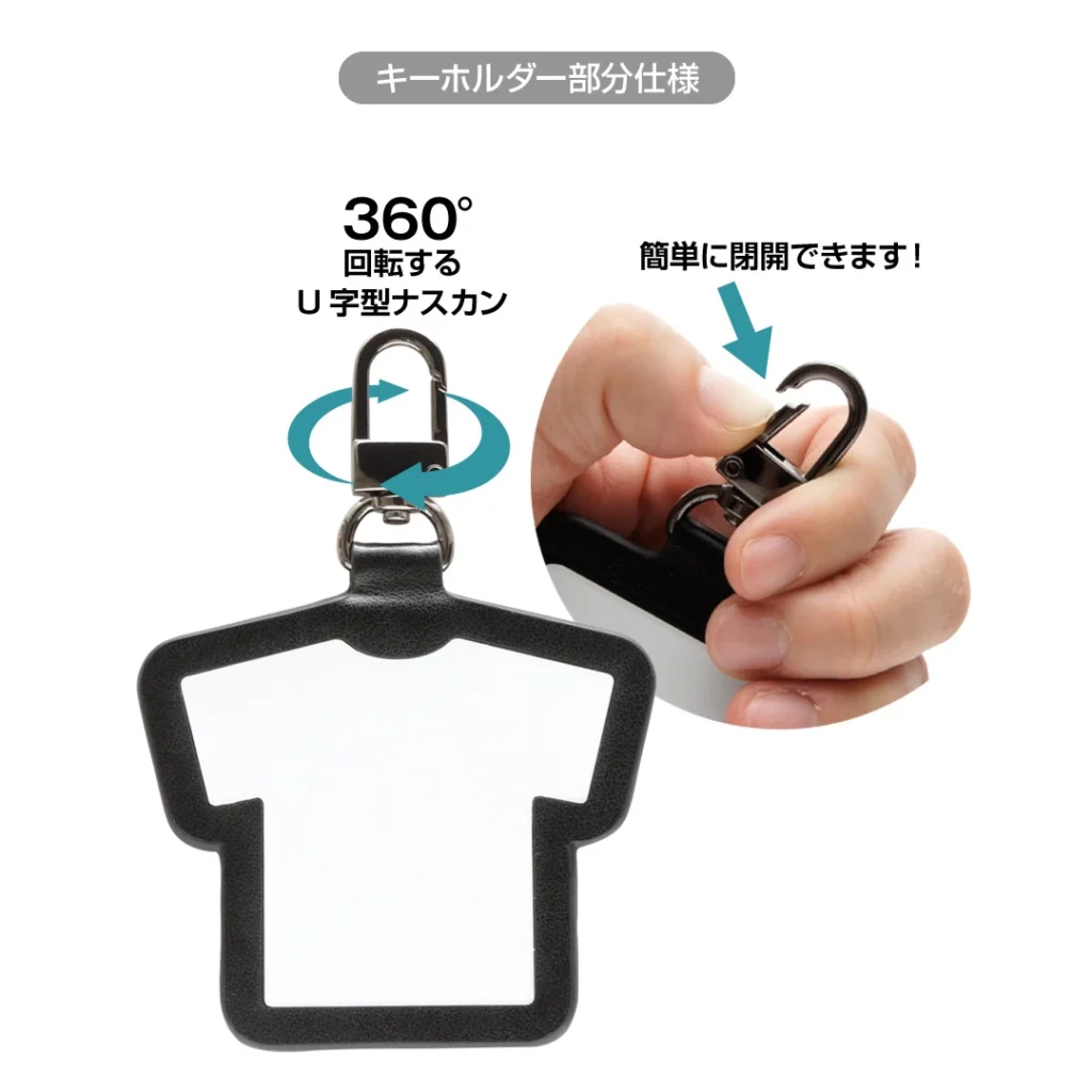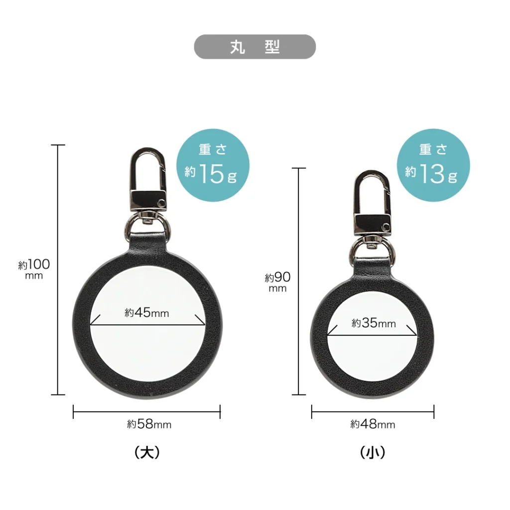 またキーホルダー部分には、360度回転するU字型ナスカンを採用しておりますので、着脱やカギなどの取り付けも簡単に行うことができます。丸型、角型、ユニフォーム型の3タイプあり、各型に「大サイズ」と「小サイズ」をご用意しました。