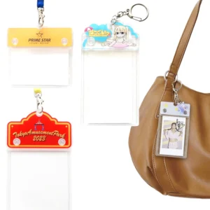 オリジナルのチェキホルダー・ネームホルダー・チケットホルダーは、透明度が高く美しいヘッダーパーツを備えた高品質なアイテムです。ヘッダー部分はアクリルのダイカット加工に対応しており、キャラクターやロゴ、ブランドのモチーフなどに合わせて自由な形状で制作することができます。完全オリジナルデザインで製作できるため、ファングッズや企業ノベルティ、イベント記念品などに最適です。 仕様はそれぞれの用途に合わせて設計されています。チェキホルダーには、バッグやポーチに簡単に取り付けられる便利なナスカンタイプのキーホルダーを標準装備。ネームホルダーやチケットホルダーには、安全装置と長さ調整機能を備えたネックストラップが付属しており、安心してご使用いただけます。 さらにオプションとして、アクリルチャームの追加が可能です。推しキャラクターやロゴをモチーフにしたチャームを付ければ、より特別感のあるアイテムに仕上げられます。また、ネックストラップをオリジナルプリントで製作することも可能で、統一感のあるデザイン展開ができます。ホルダー(ポケット)部分もオーダーメイドに対応しており、用途に応じたサイズや仕様での制作も可能です。もちろん、ポケット部分にプリントを施すことでデザイン性をさらに高めることもできます。 販売に必要なパッケージや資材も揃っているため、デザインデータをご入稿いただくだけで完成品としてすぐに販売できる形で納品可能です。国内生産で品質も安定しており、小ロットから大ロットまで柔軟に対応できるため、初めてのグッズ制作から大規模な展開まで安心してご利用いただけます。 チェキホルダーは推し活アイテムや同人イベント用に、ネームホルダーは企業やイベントスタッフ用に、チケットホルダーはライブやスポーツ観戦、テーマパークの公式グッズとして。いずれも実用性とデザイン性を兼ね備えたアイテムとして、多彩なシーンで活躍するオリジナルグッズを制作いただけます。